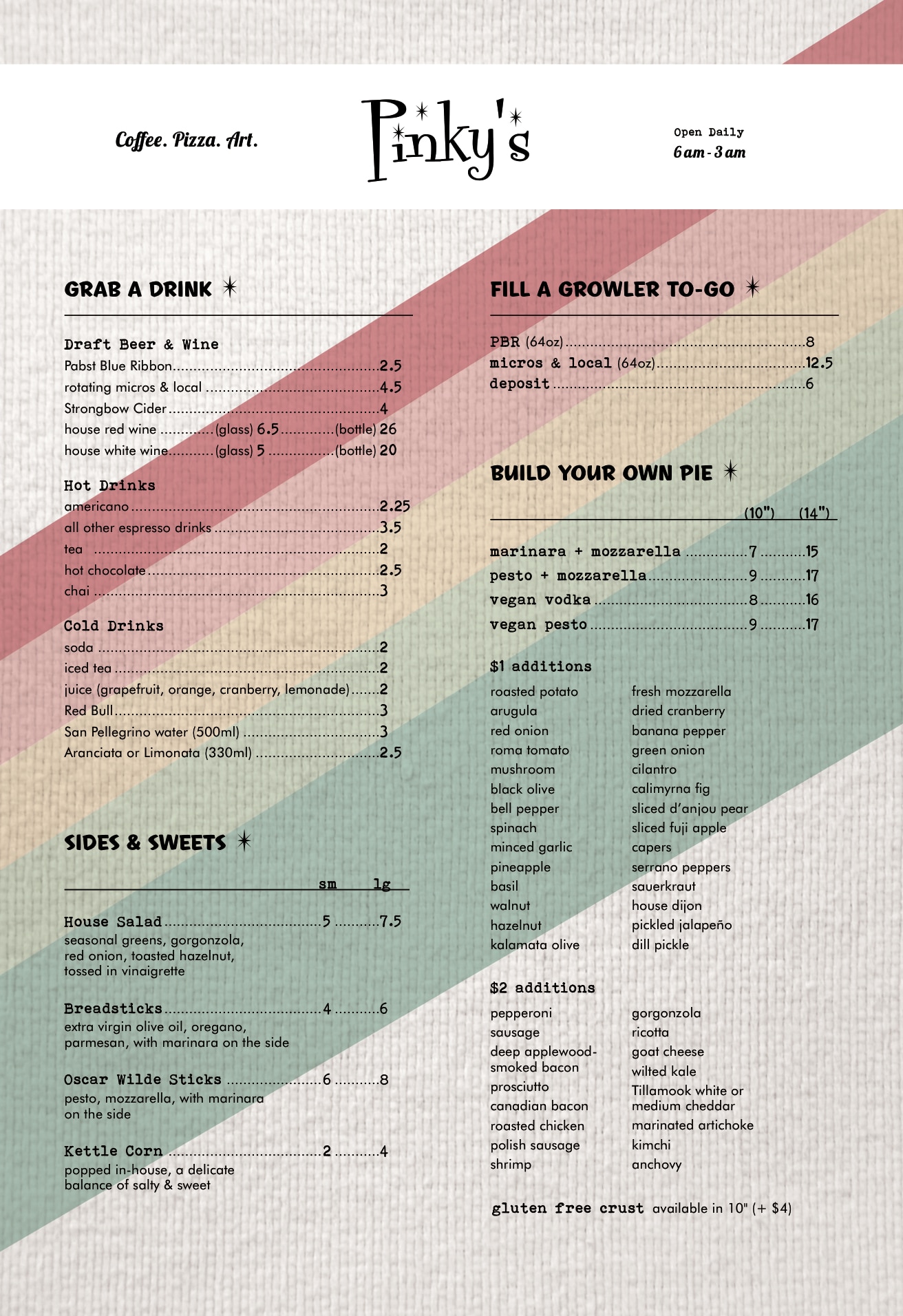 Menu  – Printed on 80# opaque uncoated paper