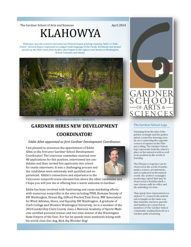 Founded in 1995, The Gardner School of Arts & Sciences is the only independent school in SW Washington.  Classes range from preschool through eighth grade with 100 students enrolled.  The Gardner School is independently governed by a board of trustees as a 501(c)3 nonprofit institution without tax support or religious affiliation.